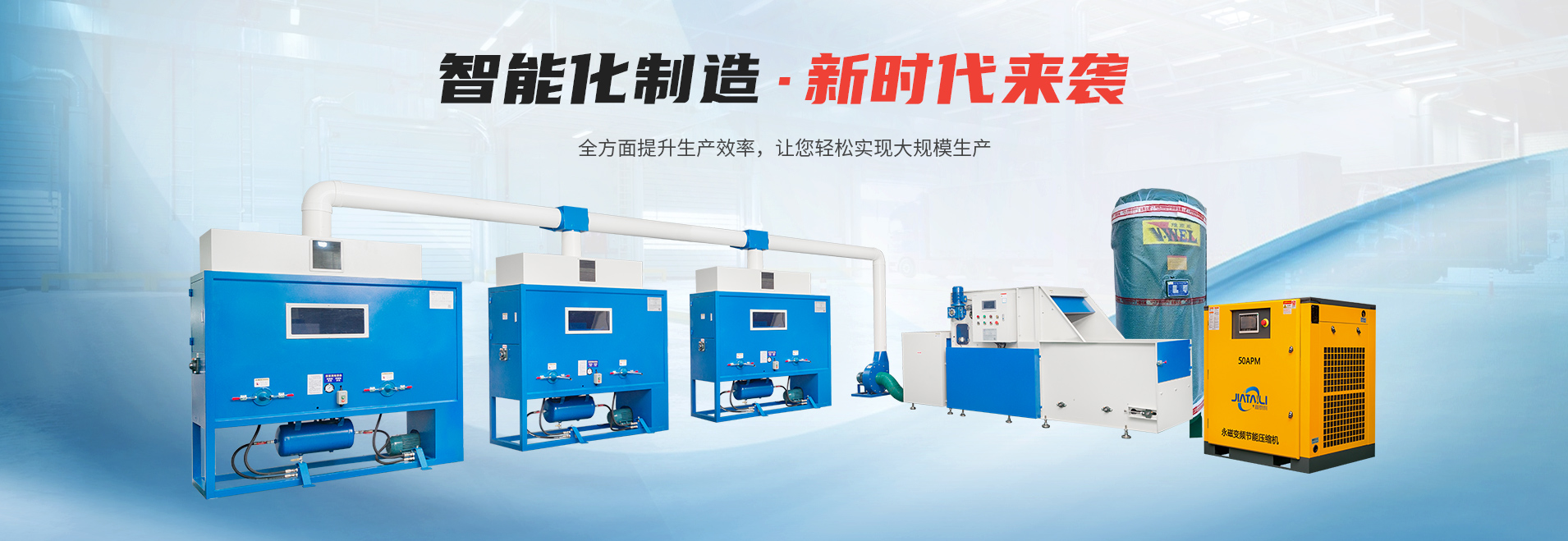 產品涵蓋微電腦控制松棉機、充棉機、真空壓包機、驗針機、X光機異物檢測機、全金屬檢測機、節能空壓機、真空壓包機、吹毛機、裁斷機等。